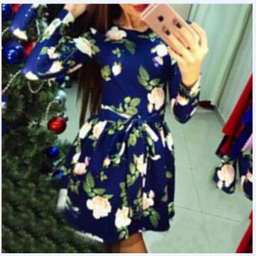 2016夏歐美新款女裝長袖印花性感連衣裙 wish速賣通外貿(mào)爆款原單 /