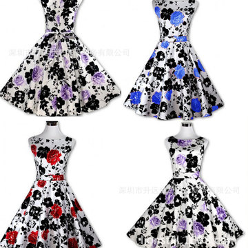 ebay速賣通爆款復古赫本風50s純色收腰大擺裙連衣裙 /