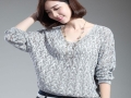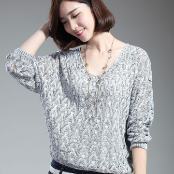 2015秋裝新款V領(lǐng)寬松鏤空蝙蝠袖毛衣女 /