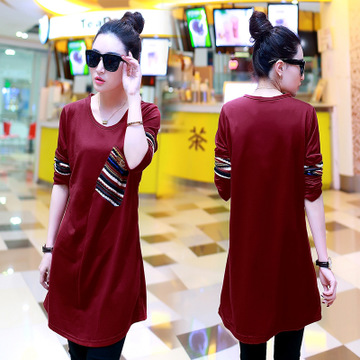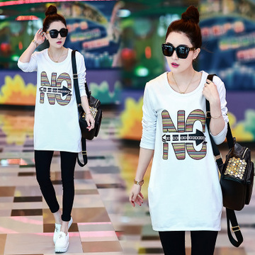 2016春裝新款薄百搭寬松女t恤桖純棉小衫韓版中長款長袖t恤 /