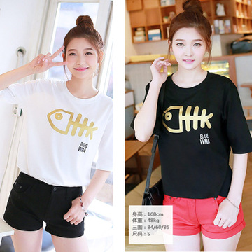 減齡T恤女夏2016韓版卡通印花短袖體恤寬松顯瘦半袖圓領(lǐng)上衣女潮 /