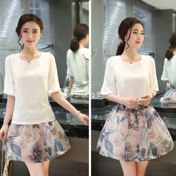 春夏女裝雪紡連衣裙2016新款韓版時(shí)尚修身顯瘦兩件套印花連衣裙潮 /