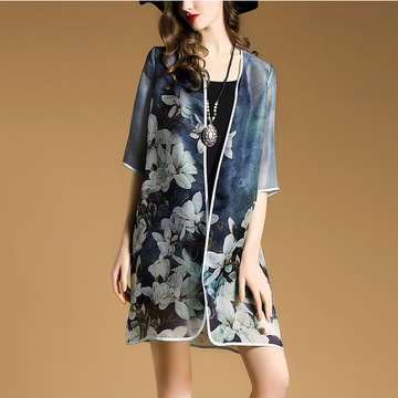 2016春夏新款高端真絲女裝印花開(kāi)衫外套寬松款空調(diào)衫 /