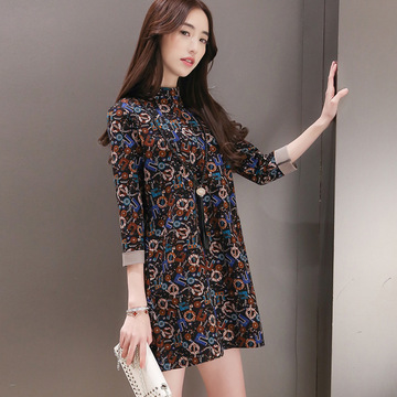 2016春裝新款女裝復(fù)古印花通勤A字裙圓領(lǐng)中袖寬松連衣裙 /
