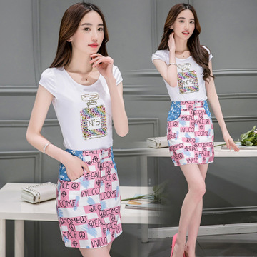 實拍2016夏季新款韓版圓領(lǐng)短袖T恤包臀裙短裙時尚套裝兩件套9920 /
