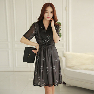 一件代發(fā)2016夏季新款韓版圓領(lǐng)修身印花雪紡連衣裙中長(zhǎng)款A(yù)字裙 /