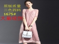 2016春裝新款女裝時尚復古真絲短袖拼接亞麻印花連衣裙 /