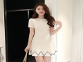 2016韓版夏裝新款 翻領(lǐng)顯瘦氣質(zhì)短袖 刺繡花連衣短裙女 /
