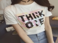 A哚啦2016夏裝新款韓版修身 休閑百搭字母短袖棉打底T恤衫女8197 /