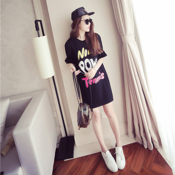 jto 春夏韓國新品圓領公主袖亮片印花中長款T恤百搭女連衣裙D224 /