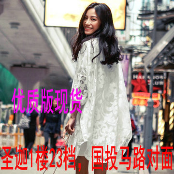 夏季新款連帽防曬衣女 薄沙灘中長款長袖蕾絲開衫網(wǎng)紗外套空調(diào)衫 /