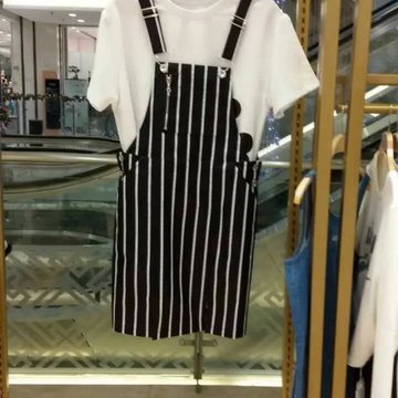 樂町2016夏新款C4GE62209修身?xiàng)l紋背帶裙C4GE6220989微信一件代發(fā) /