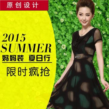 2016夏季新品網(wǎng)紗印花修身顯瘦中老年媽媽裝連衣裙 /