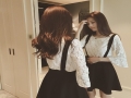 2015秋裝韓國(guó)新款蕾絲上衣+背帶半身裙 /