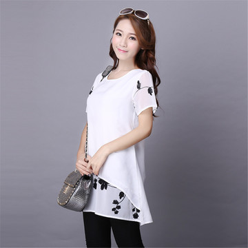 2015新款夏裝新款短袖女裝刺繡雪紡衫 /