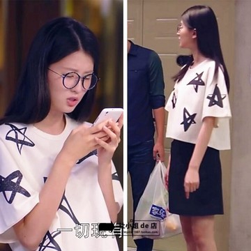 2016新品夏款歡樂頌T恤喬欣同款寬松五角星印花短袖上衣女 /