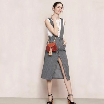 歐洲站2016春夏新款條紋單排扣牛仔背帶裙女PP113 /