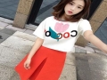 實(shí)拍#韓版春夏新款學(xué)院風(fēng)英文字母印花撞色螺紋寬松短袖T恤女 /