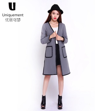 女式外套 2016春季新款歐美風女式外套 長款低領(lǐng)開叉系帶氣質(zhì)女裝 /