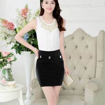 廠家直銷批發(fā)春款包臀白領(lǐng)短裙中腰職業(yè)純色名媛修身提臀棉料收腹 /