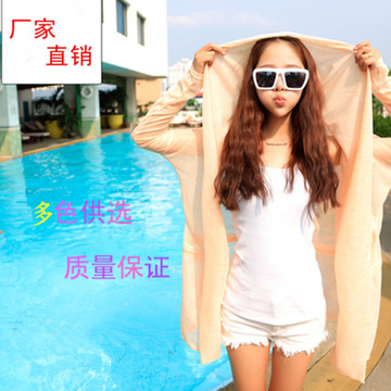 夏季時(shí)尚連帽防曬衣服女式戶外中長(zhǎng)款長(zhǎng)袖透明帶帽沙灘防曬服批發(fā) /