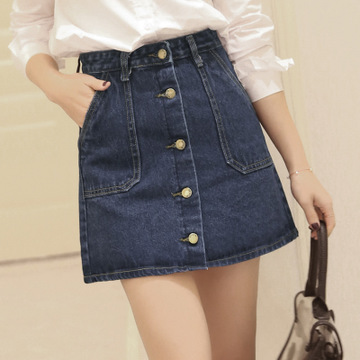 2016韓版包臀顯瘦單排扣修身牛仔短裙潮夏季新款時(shí)尚A字半身裙女 /