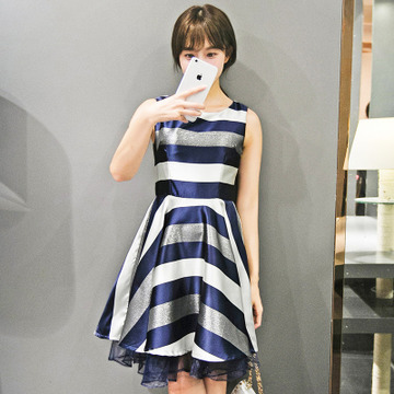 2016夏季新款連衣裙修身顯瘦條紋百搭時(shí)尚女裝支持一件代發(fā) /