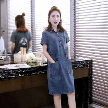 2016夏季新款韓版女裝寬松腰短袖牛仔連衣裙 代理加盟 一件批發(fā) /