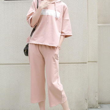 2016夏裝新款女裝兩件套運(yùn)動(dòng)七分褲連帽寬松闊腿褲套裝 /