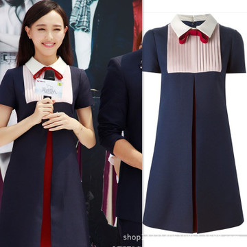 2015春裝新款女裝克拉戀人唐嫣明星同款短袖修身中長款連衣裙女潮 /
