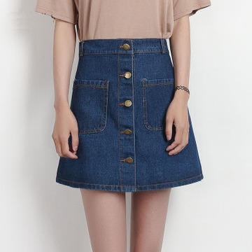 2016春夏裝新款韓版高腰單排扣半身裙A字裙口袋牛仔打底短裙 /