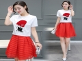 2016夏季新款收腰可愛簡(jiǎn)約風(fēng)小紅帽白T恤+紅色鏤空條紋短裙套裝 /