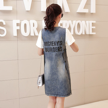 歐洲站2016春裝新款女裝休閑牛仔馬甲連衣裙一步裙子廠家直銷 /