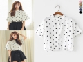 韓版可愛(ài)學(xué)院風(fēng)麻棉休閑寬松波點(diǎn)短袖立領(lǐng)襯衣 /