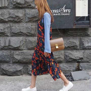 現(xiàn)貨 韓國(guó)NEW ARRIVAL 復(fù)古花朵吊帶連衣裙 /