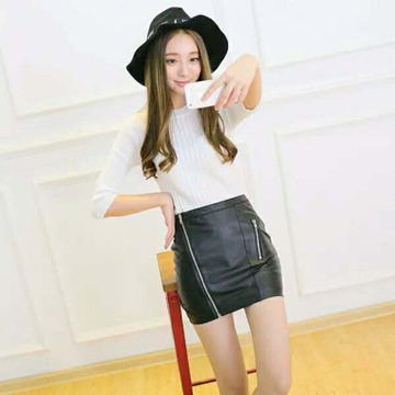 2016春夏新款半身裙包臀裙時(shí)尚高腰性感脫卸拉鏈皮短裙 /
