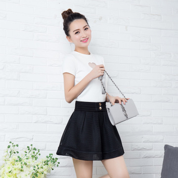 2016夏季新款黑色網(wǎng)眼百褶裙傘裙百搭A(yù)字蓬蓬裙顯瘦半身裙短裙子 /