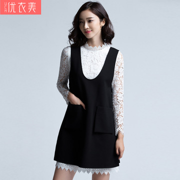 優(yōu)衣美2016春季新款套裝裙子時尚馬甲蕾絲兩件套長袖連衣裙女3228 /