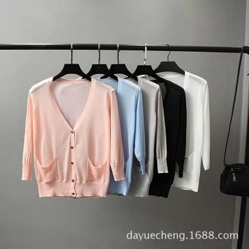 2016夏裝新款韓版女裝亞麻百搭九分袖針織衫薄外套開(kāi)衫純色防曬衣 /
