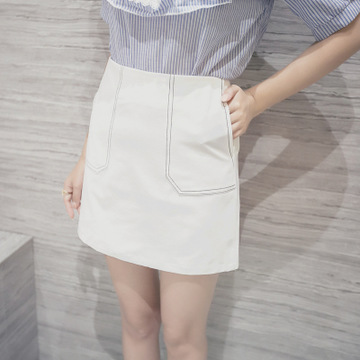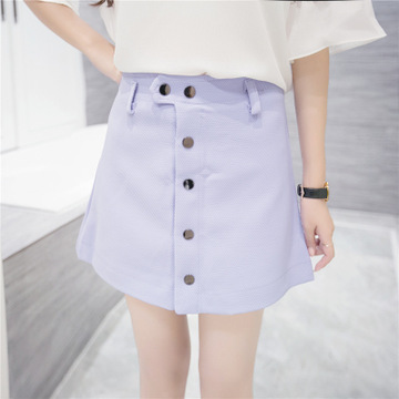 2016夏季新款韓版女裝高腰百搭A(yù)字裙修身單排扣半身短裙 女 /