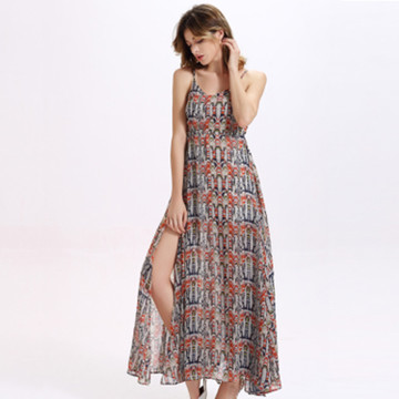 實(shí)拍 速賣通歐美 性感吊帶雪紡不規(guī)則長裙連衣裙禮服 /