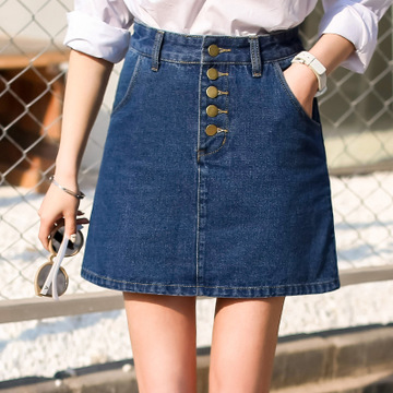 D5221#實(shí)拍新款韓版高腰包臀牛仔半身裙排扣短裙牛仔裙A字裙女 /