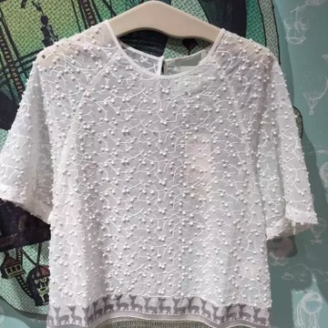 地素同款夏季歐美新款修身顯瘦高端刺繡流蘇白色小上衣女3M2D354 /