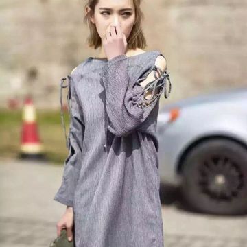 ATOP 春季新款 氣質(zhì)百搭棉麻料 袖子綁帶長款T恤 連衣裙 /