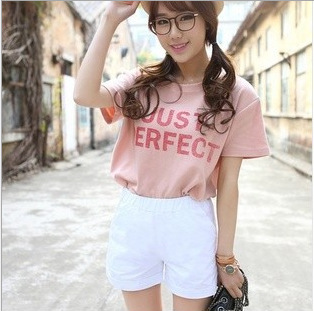 夏季三分褲女裝糖果色大碼沙灘褲寬松女士松緊腰女休閑短熱褲 /