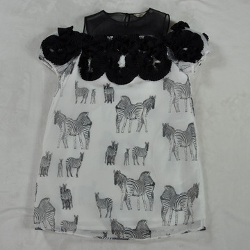 【MZ】歐洲站夏季新款 斑馬印花圖案 燈籠袖連衣裙女 /