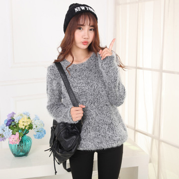 2015秋冬新款 韓版寬松針織海里毛套頭圓領(lǐng)毛衣外穿顯瘦大碼外套 /