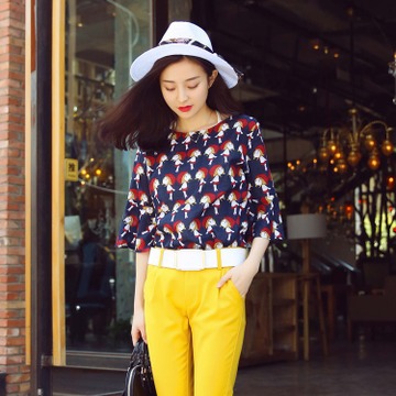 VV.GO 2016夏季韓版中袖T恤女裝 卡通休閑棉質(zhì)女士T恤上衣 74907 /