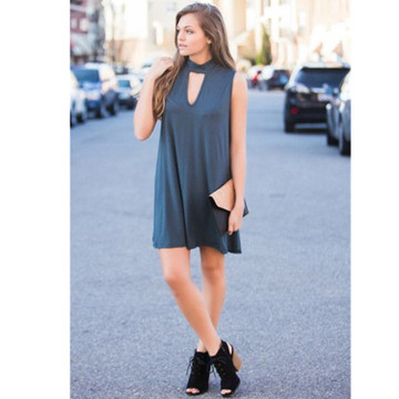 歐洲站速賣通ebay爆款性感半高領胸前鏤空寬松大碼連衣裙 /