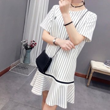 一件代發(fā) 歐洲站2016夏季新款休閑學(xué)院風(fēng)荷葉邊豎條紋連衣裙女 /